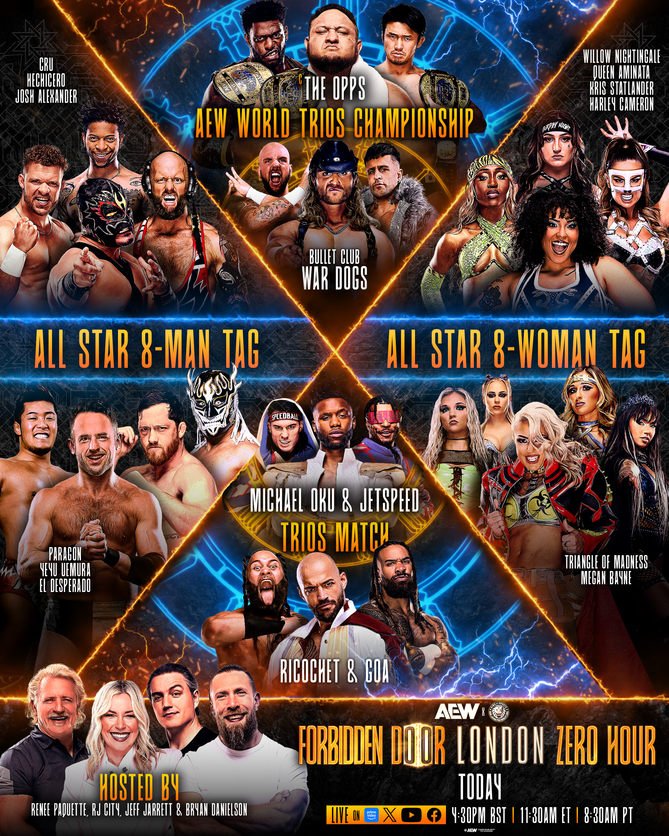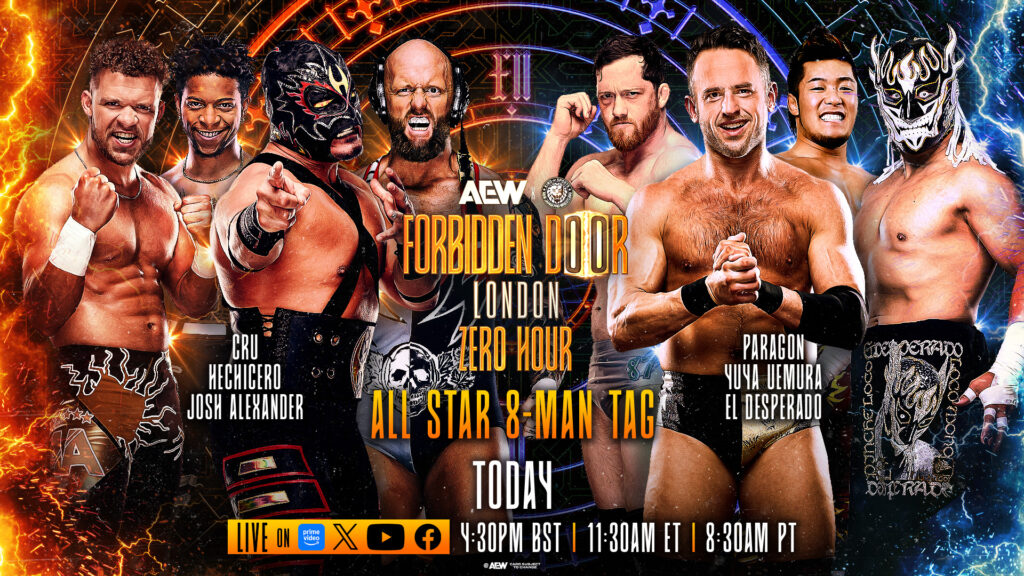 CRU (Action Andretti & Lio Rush) & The Don Callis Family (Hechicero & Josh Alexander) (w/Lance Archer & Rocky Romero).                                                              Winners: Hechicero, Josh Alexander & Rocky Romero won by pinfall.                                                                                                                                                          Rating: Solid